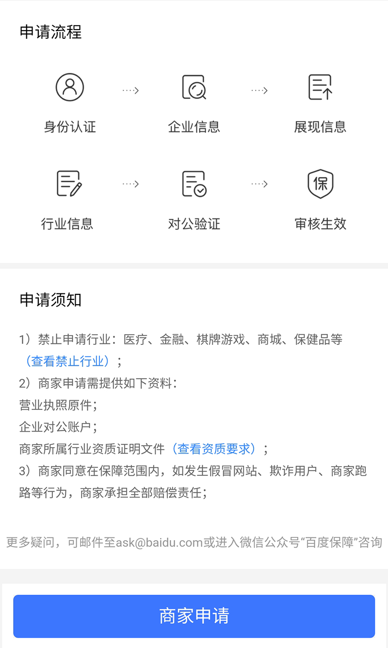 b) 搜索“百度保障商家端”,進(jìn)入百度保障小程序申請。